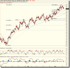 SPX/ES wave counting: Today the market fell down on decreased volume. On the following left chart we can see how the market moves from the end of primary wave 1 to the current level, wave C of 3 of (C). Wave (A) is a sharp rally, wave (B) is a flat consolidation, while the current wave (C) is another powerful impulsive rise. By taking a closer view, wave 3 is in a steep ascending channel and shows obvious impulsive nature, while the current corrective wave 4 has broken out of the channel. Obviously, the maximum downside target, if the current counting is still valid, will be the 61.8% retracement of wave 3 or the lower edge of the channel. However, since the market internal is still strong, I personally do not expect such a big sell off, probably fall to the previous consolidation region at 895 will be the first target. Note that diving below 870 will make wave 4 overlap with wave 1, and this will negate the current counting and much bigger decline will then be on the horizon. The technical indicators on 60-min, 30-min and 15-min charts are still neutral and not oversold yet, this leaves some room for further downside.